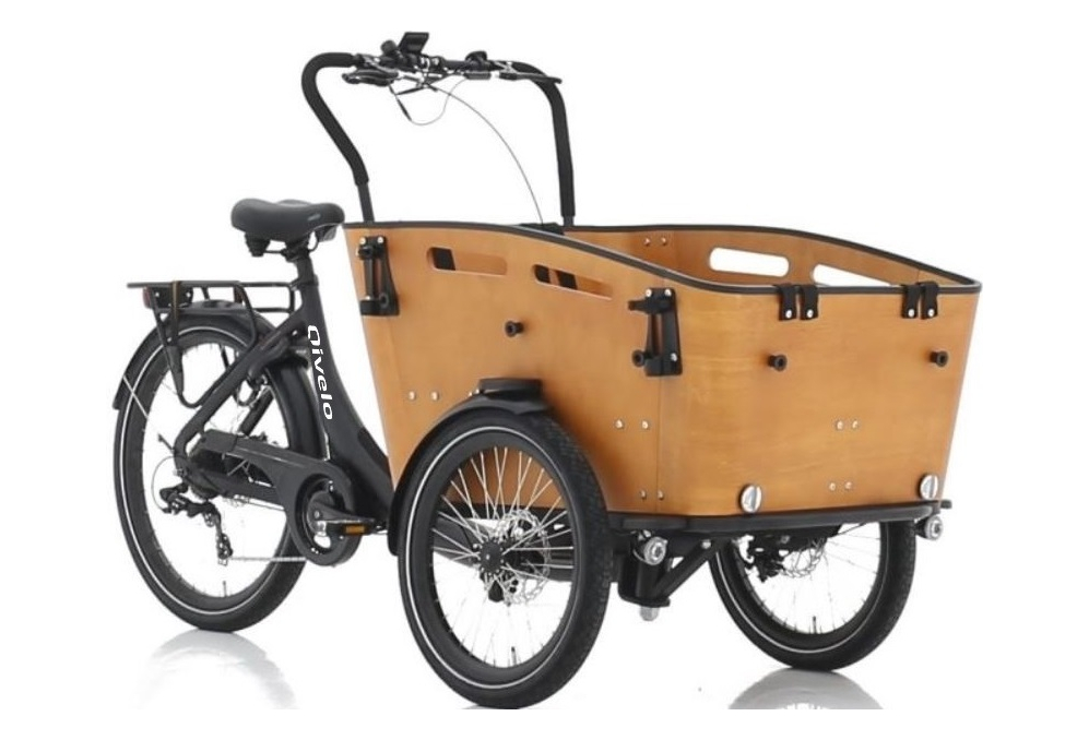 Qivelo Curve DR7 - 481Wh - Shimano 7 vitesses est un tricycle électrique avec un puissant moteur de roue arrière et une batterie de 13ah. Cadre 82cm de large, couleur noir, panier bois, très élégant, grande capacité de chargement. Roues avant 20'', arrière 26''. Freins à disque. Moteur Bafang 250W. Batterie marque LG 36V (jusqu'à environ 50 km d'autonomie) - 481Wh. Equipé en Shimano 7 vitesses - 5 niveaux d'assistance.